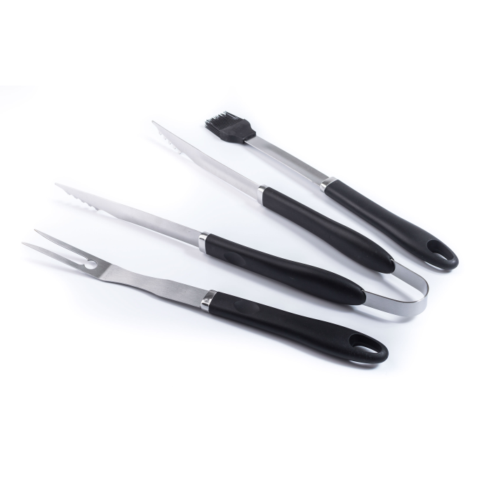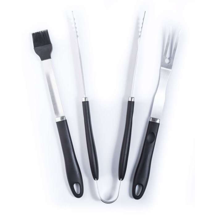 Praktické umývateľné rukoväte z odolného plastu sú prispôsobené pre pohodlné držanie a vďaka očku na zavesenie ich môžete odkladať na grilovacie háčiky G21. Grilovacie kliešte (45 cm) a grilovacia vidlička (41 cm) sú z nerezu, štetec na marinovanie (41 cm) je zo žiaruvzdorného silikónu.