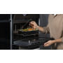 K dispozícii je funkcia Keep Warm, Rýchly ohrev (+30 s), odložený štart, elektronická minútka so zvukovou signalizáciou a digitálne hodiny. O bezpečnosť používania sa postará detská poistka a signál o ukončení varenia. Manipuláciu s dvierkami uľahčí tlmené zatváranie Soft Close a pohodlné otváranie Soft Open. Interiér je nerezový a prítomnosť špeciálneho smaltu uľahčuje údržbu. V príslušenstve je teplotná sonda (káblová), 1 plech na pečenie a 1 rošt. Rúru ľahko pripojíte k elektrine pomocou zástrčky.
