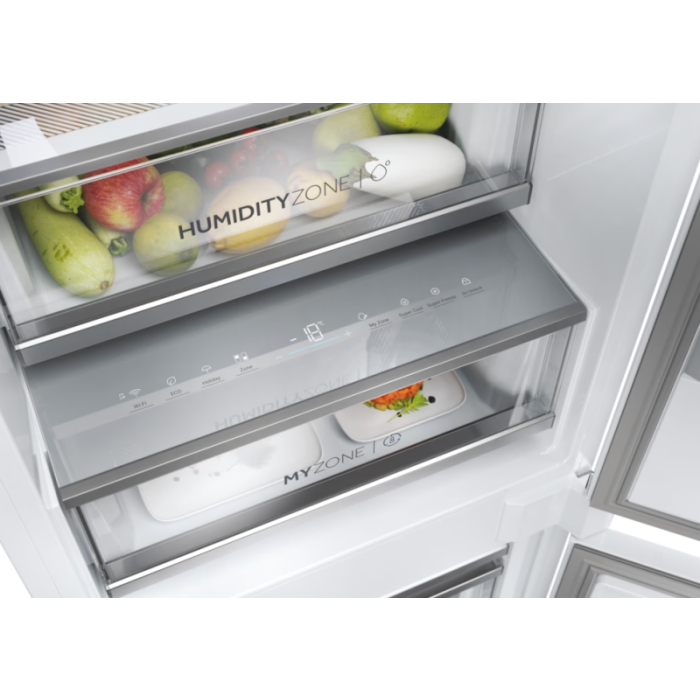 Zažite dokonalé riešenie konzervácie s perfektnou kombináciou My Zone a Humidity Zone. S My Zone je nastavenie teploty priehradky podľa vašich presných špecifikácií ľahké jediným dotykom a poskytuje vám zážitok šitý na mieru ako nikdy predtým. Humidity zóna medzitým udržuje optimálnu úroveň vlhkosti 90%, čo zaisťuje, že vaše ovocie a zelenina zostanú rovnako čerstvé a chutné ako v deň, keď ste ich kúpili. Rozlúčte sa so zvädnutou zeleninou a privítajte dlhotrvajúcu čerstvosť, vďaka pokročilej konzervačnej technológii Haier.