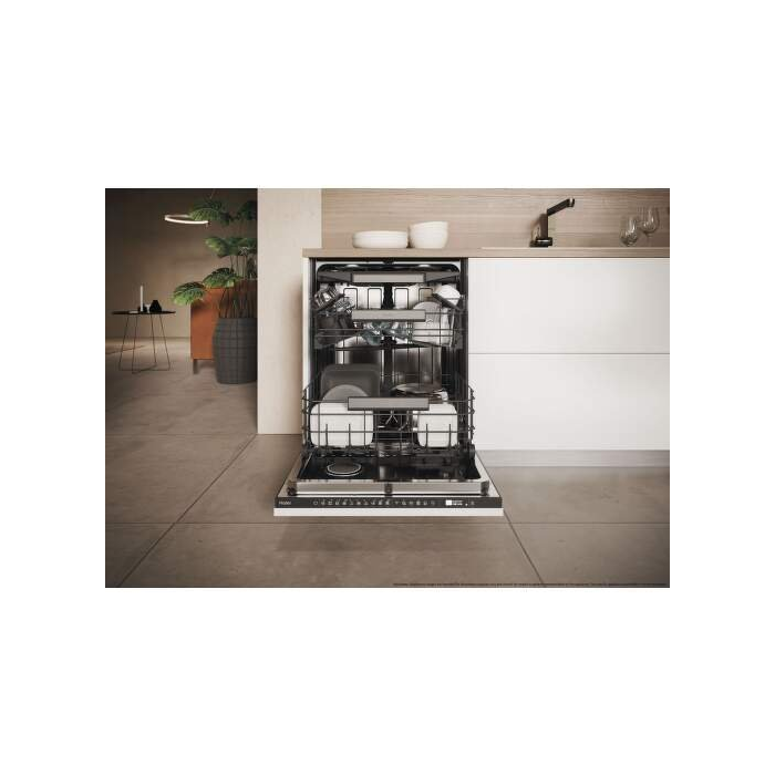 Vstavaná, plne integrovaná umývačka riadu Haier XI 6B0M4PDB má kapacitu pre umytie 16 súprav riadu. Ponúka 10 základných programov a extra programy v aplikácii hOn. Disponuje technológiou Cutlery Shine Plus, invertorovým motorom, veľkým priestorom Maxi Tub, dotykovým displejom, funkciou Washing Lens a systémom Total Water Block System. Inteligentnú umývačku riadu môžete ovládať aj prostredníctvom aplikácie hOn vďaka podpore WiFi/Bluetooth pripojenia. Predná krycia doska nie je súčasťou balenia.
