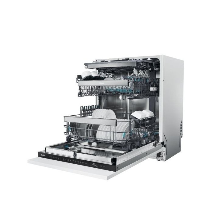 Výnimočná kapacita a flexibilný vnútorný priestor umývačky Haier umožňuje uložiť až 16 súprav riadu.