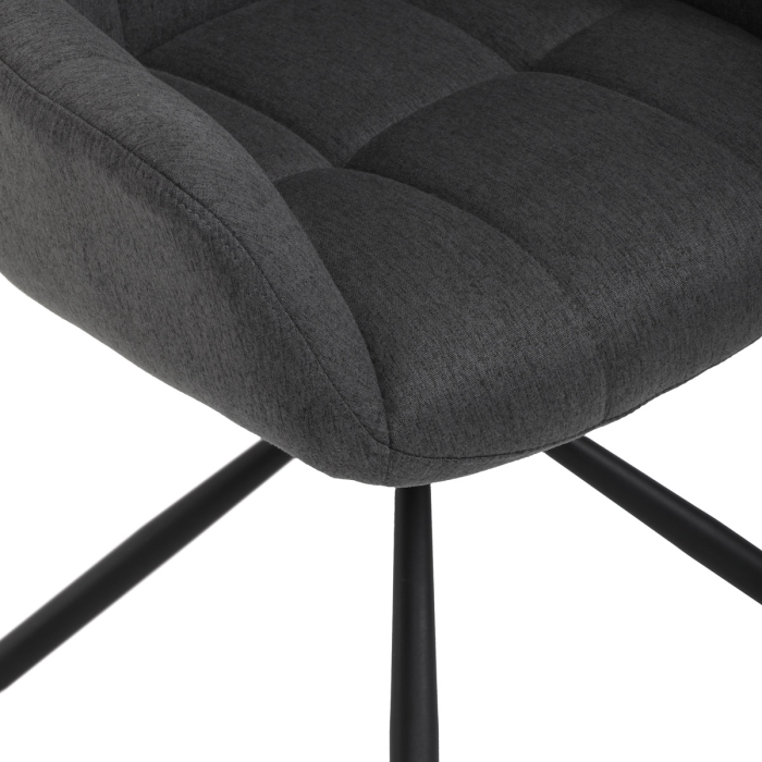 Otočné křeslo značky Autronic přináší moderní design a maximální pohodlí do vašeho interiéru. Čalounění v tmavě šedém odstínu v kombinaci s prošívanými detaily vytváří luxusní vzhled, který se skvěle hodí do obývacího pokoje, pracovny nebo kanceláře. Stabilní kovová podnož v černé barvě zajišťuje pevnost a odolnost, zatímco otočný mechanismus umožňuje flexibilní pohyb a komfortní užívání. Ergonomicky tvarovaný sedák s područkami poskytuje vynikající oporu a pohodlí, díky čemuž je toto křeslo ideální volbou pro relaxaci i pracovní činnosti.