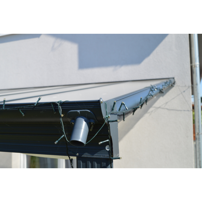 Hliníková pergola k stene, v ktorej nájdete príjemné miesto odpočinku hneď vedľa vášho domu. Konštrukcia pergoly je z odolnej hliníkovej zliatiny a je nastriekaná práškovou vypaľovanou farbou (komaxit), a preto trvalo odoláva prírodným klimatickým vplyvom. Strecha je vyrobená z polykarbonátových komôrkových dvojstenných dosiek hrúbky 6 mm, ktoré dodávame v 3 odtieňoch - číre alebo mliečne biele priesvitné (tvz. OPÁL) alebo dymovo hnedé (BRONZ). Z dôvodu zaistenia maximálnej kvality používame na strechu pergoly výhradne prémiové komôrkové polykarbonátové dosky MARLON ST LONGLIFE (výrobca BRETT MARTIN Veľká Británia), ktoré v ČR prešli náročným testami v štátom akreditovaných skúšobniach ako stavebný materiál (požiarne skúšky, mechanické skúšky). Na nerozbitnosť polykarbonátovej strechy krupobitím poskytujeme zmluvnú predĺženú záruku 10 rokov.