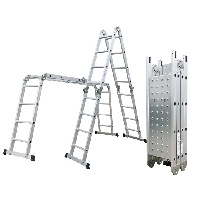 Hliníkové štafle môžete využiť jednak ako dlhý rebrík v dĺžke až 4,6 m. Ďalším variantom je možnosť zostaviť štafle ako prenosné lešenie. Balenie obsahuje 2 ks podlážok pre prestavbu rebríka na lešenie. Vďaka konštrukcii s kĺbmi možno štafle ľahko umiestniť cez hrebeň strechy.