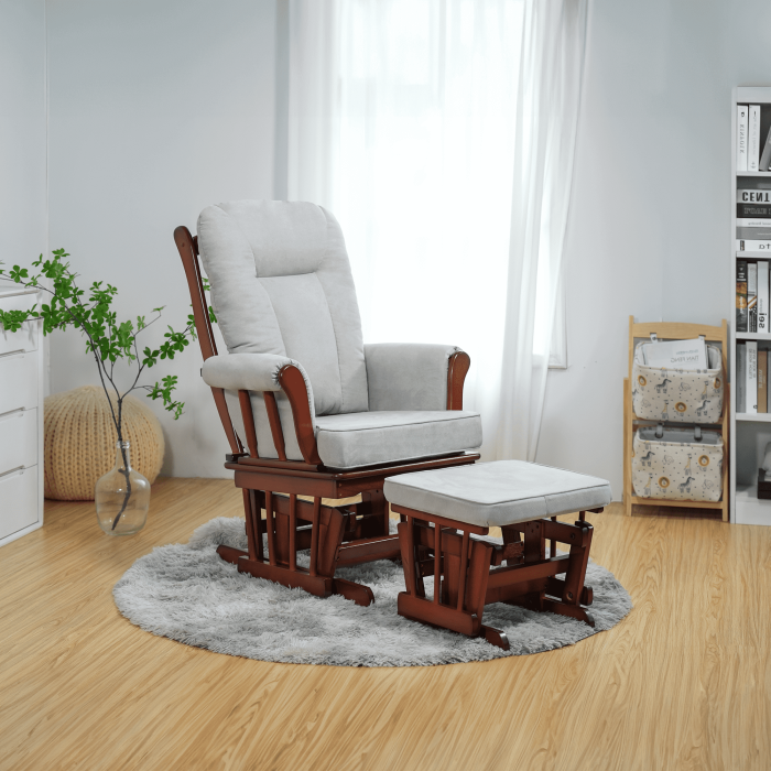 Hojdacie kreslo s podnožou, orech/sivá, SAFORD
