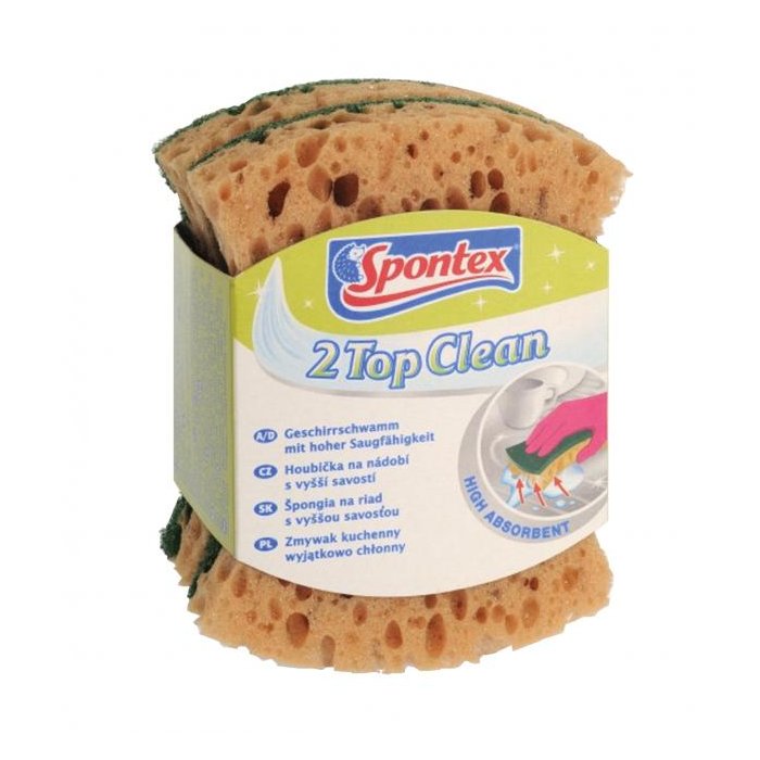 Ergonomicky tvarovaná viskózna hubka a utierka v jednom Top Clean, z jednej strany zelená abrazívna vrstva na čistenie.