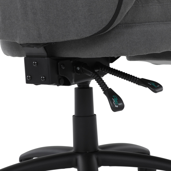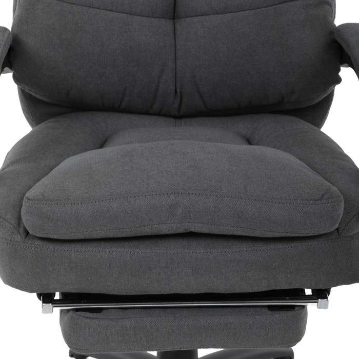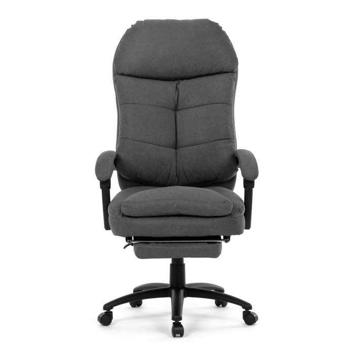 Stylová a pohodlná kancelářská židle značky Autronic v tmavě šedém provedení je ideálním společníkem pro dlouhé pracovní dny. Díky kvalitní látce, měkké výplni z PU pěny a čalouněným područkám poskytuje maximální komfort při sezení. Praktická výsuvná opěrka nohou zvyšuje pohodlí a umožňuje relaxaci během práce. Synchronní mechanika zajišťuje nastavení polohy opěráku zad s možností aretace ve Vámi preferovaných polohách. Stabilní černý kříž s kolečky je nejen funkční, ale také esteticky zapadne do každého pracovního prostředí.