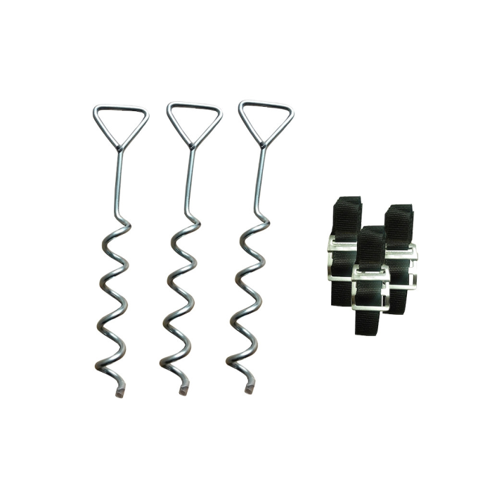 S kotviacou sadou je možné rýchlo a jednoducho pripevniť trampolínu k zemi a zaistiť tak jej dokonalú stabilitu. Sada sa skladá zo spojovacích pásov s oceľovými prackami a bodákov s protihrotom. Sadu je možné použiť k spevneniu všetkých typov trampolín Marimex. Je nutné ju upevniť do spevneného podkladu.
