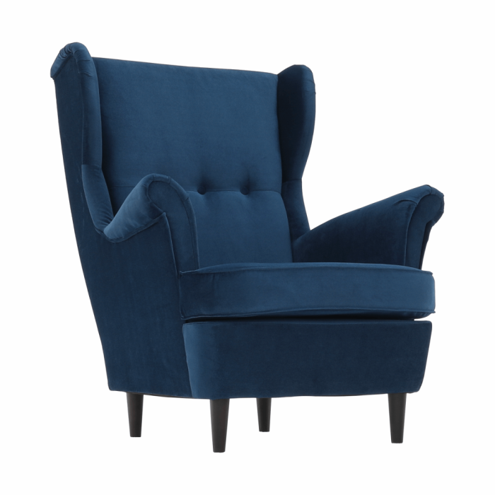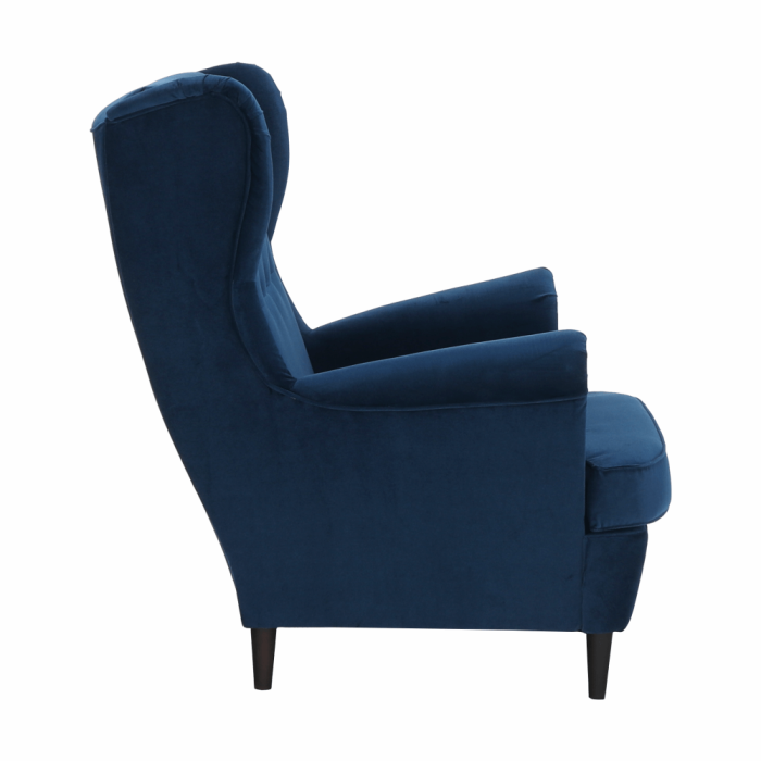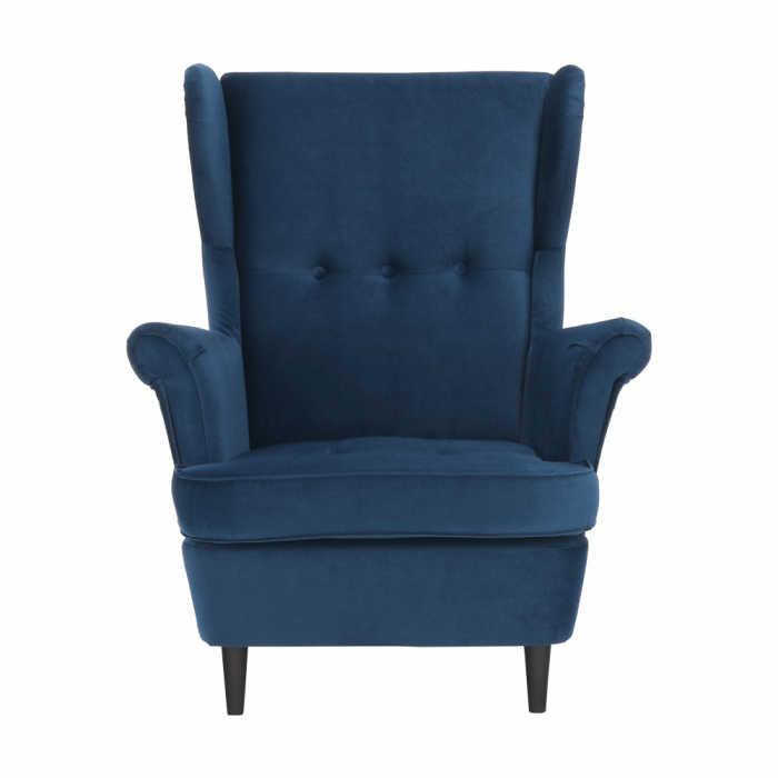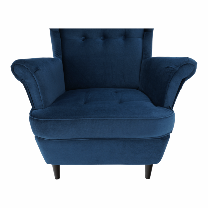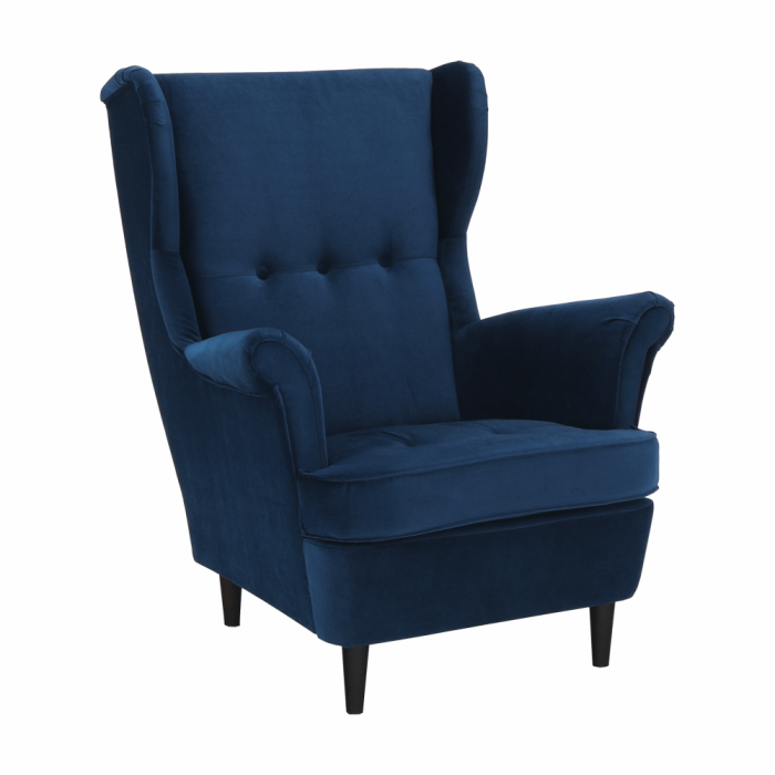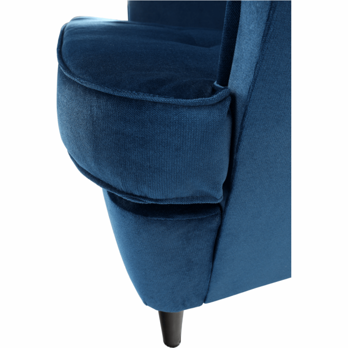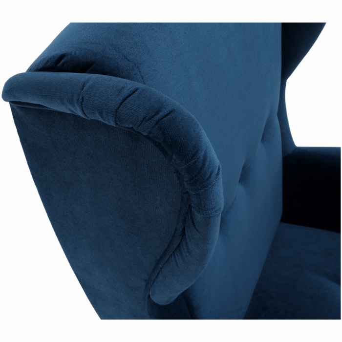 Kreslo ušiak, modrá/orech, RUFINO 3 NEW