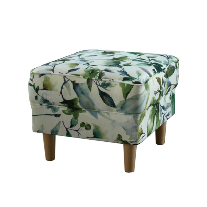 Kreslo ušiak s taburetom, látka vzor zelené lístie, ASTRID