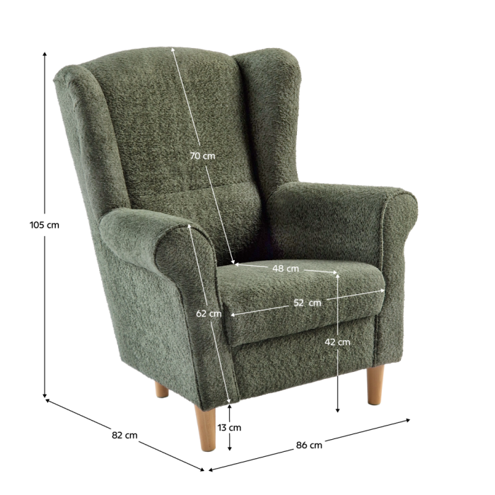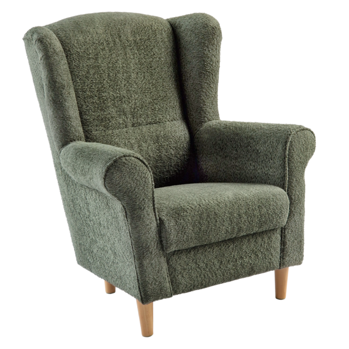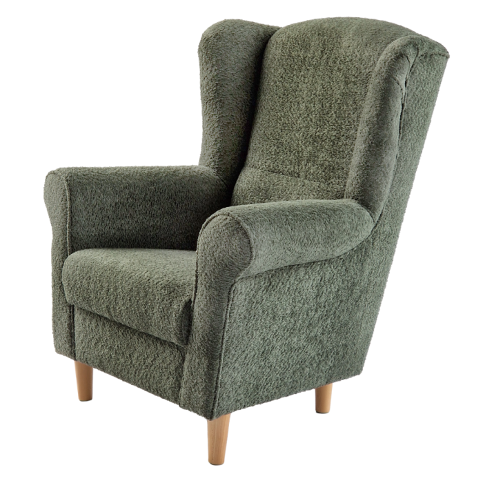 Kreslo ušiak, zelená látka Coral, CHARLOT
