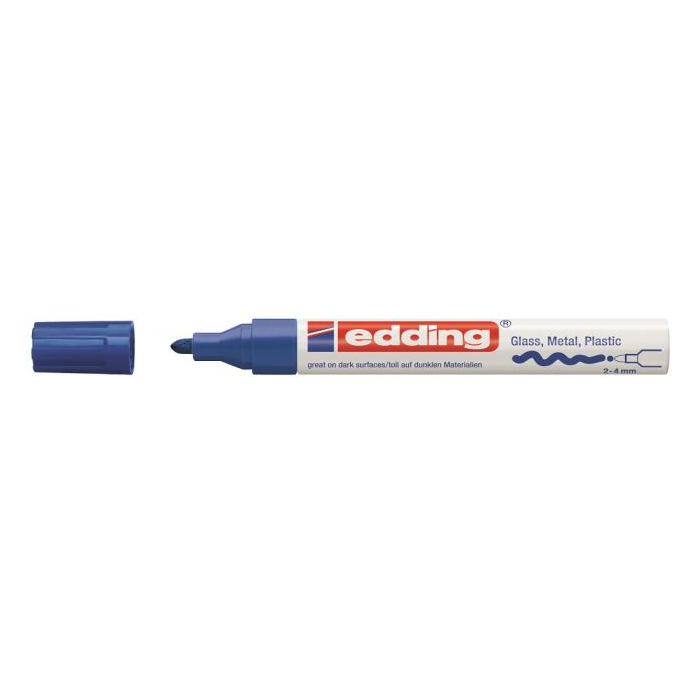 Nearomatický pigmentový atrament bez prísad toluénu/ xylénu rýchlo schne a vytvára úplne krycí lakovaný povrch, vhodný aj pre tmavé a priehľadné povrchy. Vysoká stálosť na svetle, nezmazateľnosť a odolnosť voči ohňu. Prietok atramentu riadený ventilom. Hrot okrúhly, šírka stopy 2 - 4 mm. Väčšie balenie 10 ks.