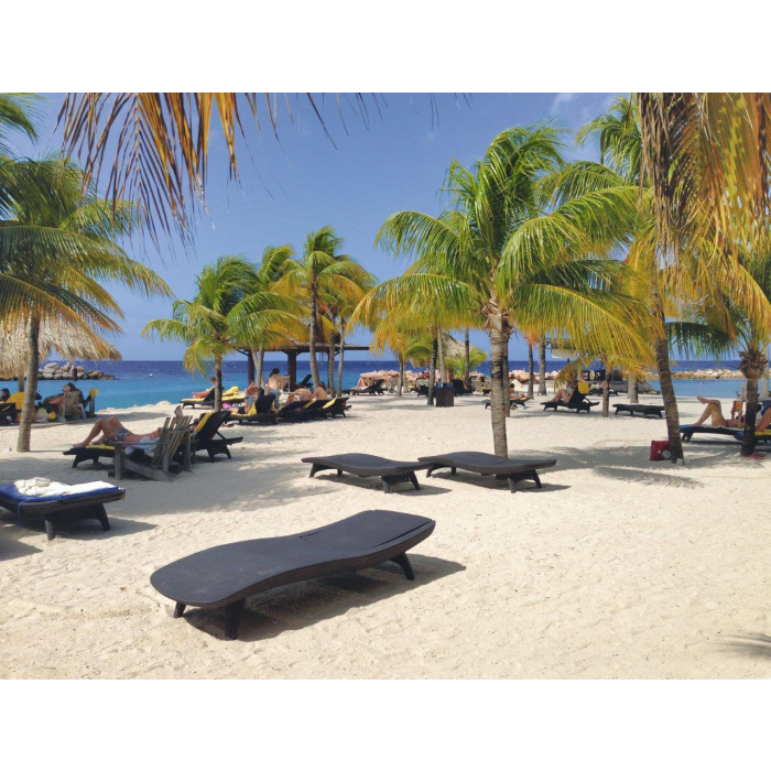 • Whiskey hnedé plážové a záhradné lehátko s dizajnom prírodného ratanu