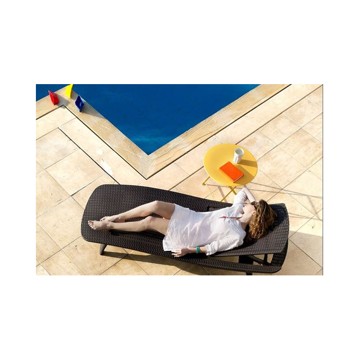 Tmavo hnedé plážové a záhradné lehátko Pacific značky Keter vás nadchne originálnym dizajnom s krásnym oblým tvarom. Povrch pripomína svojou štruktúrou prírodný ratan, avšak u tohto produktu sa nemusíte báť vetra, dažďa a UV žiarenia.