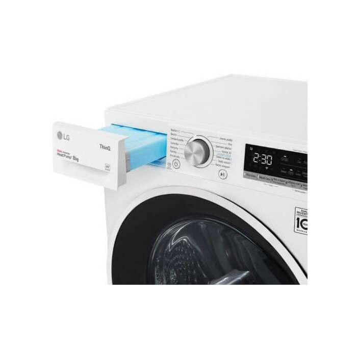 Hybridná kondenzačná sušička bielizne s tepelným čerpadlom LG RC8TV9AVHN v bielom prevedení. Disponuje kapacitou pre 8 kg bielizne a zaradená je do energetickej triedy A+++. Na výber máte z 14 programov vrátane programu pre alergikov, prídavných funkcií a 3 stupňov sušenia. Ovládať ju budete pomocou otočného voliča a LED displeja. Možné je ju ovládať aj na diaľku prostredníctvom mobilného zariadenia pripojeného k Wi-Fi, pomocou LG ThinQ. Vybavená je DUAL Inverter Heat Pump™, Dual InverterDrive motorom a dvojitým filtrom. Maximálna dosahovaná hlučnosť 62 dB.