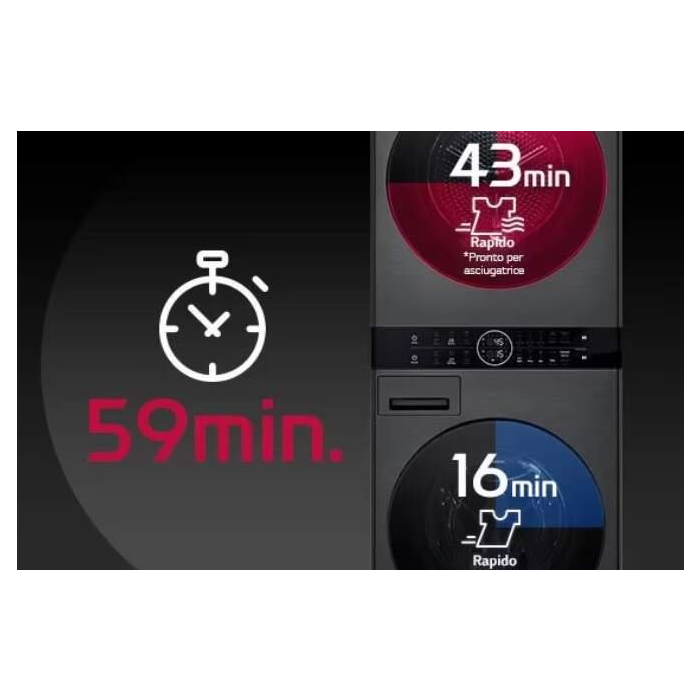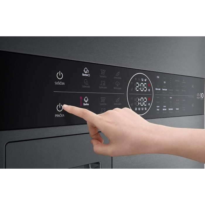 LG WashTower WT1210BBF predstavuje jedinečný spotrebič, ktorý kombinuje práčku a sušičku v elegantnom dizajne, ktorý optimalizuje priestor. Má všetky výhody pracieho stĺpa s naskladanou práčkou a sušičkou, ale na menšom priestore. Všetky ovládacie prvky sú usporiadané na jednom dotykovom paneli, ktorý je ľahko dostupný a pohodlne sa používa. Práčka a sušička v čiernej farbe s čiernymi dvierkami z tvrdeného skla má elegantný moderný dizajn. Práčka má kapacitu pre pranie 12 kg bielizne, ponúka 7 pracích programov vrátane parného programu. Je vybavená invertorovým Direct Drive™ motorom s 10 ročnou zárukou na motor. Max. otáčky odstreďovania dosahujú 1 400 ot/min pri hlučnosti 72 dB. Sušička s kapacitou pre 10 kg bielizne ponúka 7 programov sušenia a dosahuje max. hlučnosť 62 dB. Disponuje duálnym invertorovým tepelným čerpadlom a invertorovým motorom s 10 ročnou zárukou na motor/kompresor.