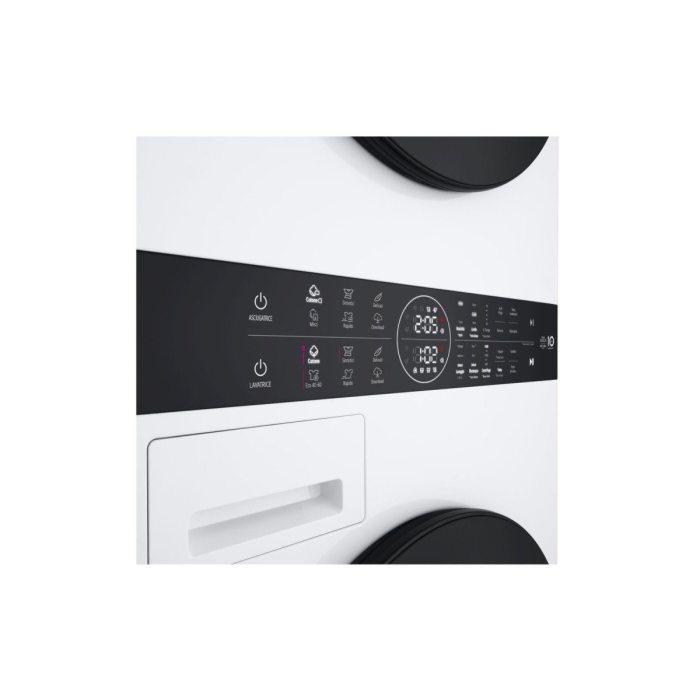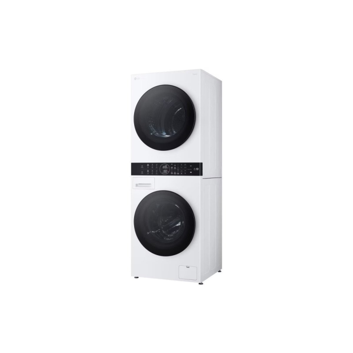 Smart spredu plnená práčka a sušička LG WashTower WT1210WWF v stĺpovom prevedení v bielej farbe s čiernymi dvierkami z tvrdeného skla. Práčka má kapacitu pre 12 kg a sušička pre 10 kg bielizne. Spotrebič je vybavený invertorovým motorom Direct Drive™ s 10 ročnou zárukou, invertorovým čerpadlom, inteligentným systémom prania AI DD™, parným praním Steam™, TurboWash™360°, sušením s úsporou času alebo vody EcoHybrid™. Ponúka 7 programov prania, 7 programov sušenia a 14 prídavných možností. Disponuje možnosťou WiFi pripojenia a ovládaním na diaľku aplikáciou LG ThinQ.