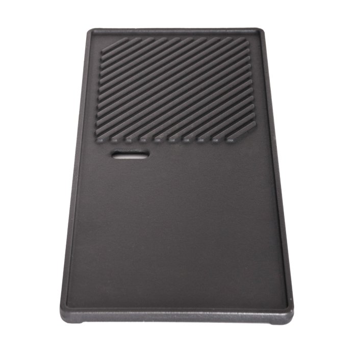 Liatina patrí medzi najodolnejšie materiály, ktoré sa na grilovanie používajú. Je vysoko odolná proti vysokým teplotám a poškriabaniu. Na každej polovici liatinového plátu máte k dispozícii iný druh povrchu. Jedna polovica je hladká a využijete ju predovšetkým pre grilovanie nakrájanej zeleniny, vajíčok a syrov. Druhá polovica s vrúbkami je určená pre správne grilovanie steakov, väčších kusov zeleniny a rýb.