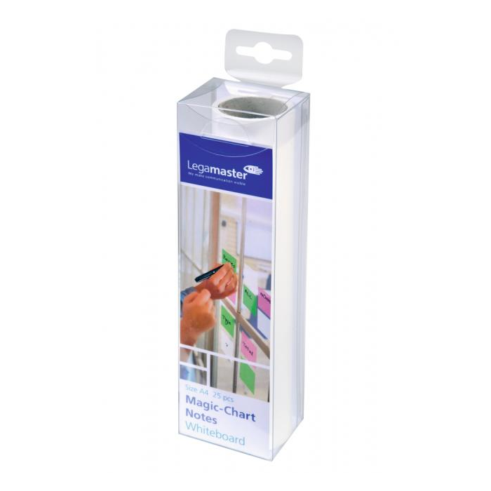Bloky a rolka popisovateľné popisovačmi na biele tabule, zmazateľné prstom, vreckovkou alebo handričkou a opätovne použiteľné pre ďalšie poznámky.