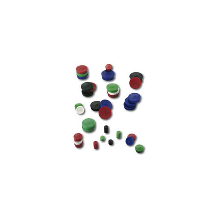 Okrúhle trvácne keramické magnety s farebným plastovým krytom.