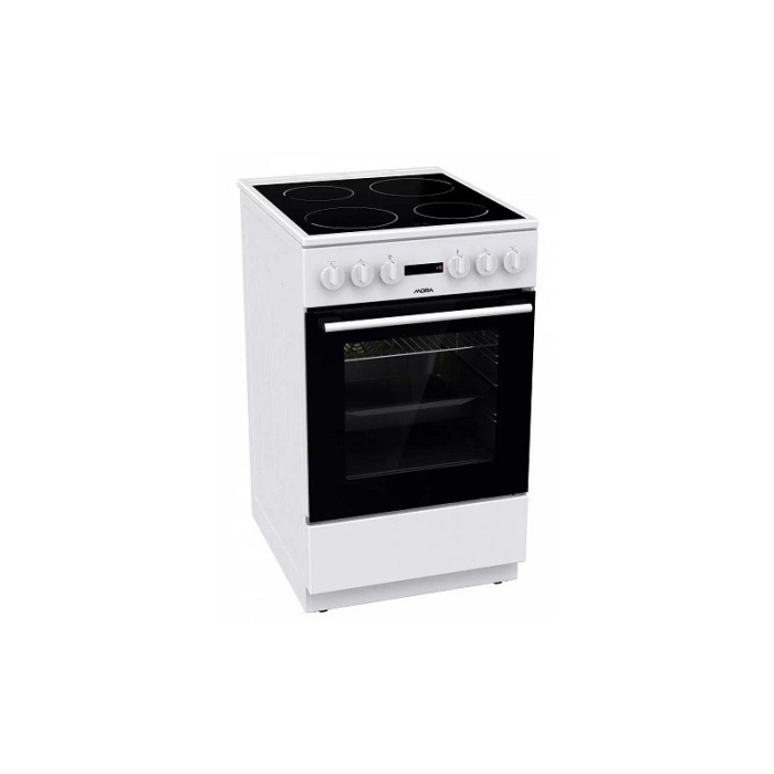 Elektrický sporák Mora v klasickom bielom prevedení oplýva sklokeramickou doskou a multifunkčnou rúrou s 11 programami na pečenie presne na mieru pripravovaným pokrmom. Nájdete tu tak program na pečenie pizze, pomalé pečenie alebo efektívne rozmrazovanie hotoviek bez predhrievania. Aj tak je však predhriatie rekordne rýchle a zaberie iba päť minút na dosiahnutie 200 °C. Ďalej sa môžete tešiť na praktický digitálny časovač, teleskopický výsuv, komfortné zatváranie alebo ľahké čistenie.