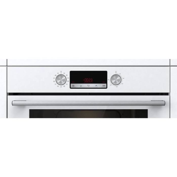 Táto elektrická rúra v klasickom bielom prevedení vám okrem tradičného pečenia otvorí dvere k ďalším moderným tepelným úpravám pokrmu. Disponuje funkciou pary, ktorú ocenia predovšetkým priaznivci zdravej výživy. Pripravíte s ňou jedlá rýchlo a šetrne, takže si zachovajú maximum vitamínov a stopových prvkov. Navyše vás prekvapí výborná chuť a prirodzená konzistencia výsledných jedál. Pokiaľ si radi pochutnávate na hranolkách alebo kuracích nugetách, ale nedoprajete si ich tak často kvôli vysokej kalorickej hodnote, môžete tiež skúsiť program pre teplovzdušné fritovanie bez tuku. Ďalej je rúra vybavená 12 programami pečenia, ktoré sú navrhnuté presne podľa potrieb konkrétnych jedál. Vykúzlite napríklad výbornú pizzu ako z talianskej reštaurácie (program Pizza 300 °C), pomaly upečiete pečienku a efektívne rozmrazíte hotové porcie jedla. Klenutý vnútorný priestor rúry je inšpirovaný tradičným tvarom kamennej pece. Chytro rozmiestnené vyhrievacie telesá a extra veľký objem 77 l zaručujú dokonale prepečené a chrumkavé jedlo zo všetkých strán. Túto vlastnosť oceníte najmä pri príprave hydiny alebo domáceho chleba. Zaujme vás určite aj variabilným rozpätím teploty od 50 do 300 °C. Tiché zatváranie a otváranie dvierok prinesie komfort pri každodennej prevádzke. Perfektné vyčistenie parou zaistí funkcia ECO CLEAN, vďaka ktorej odstránite aj väčšie nečistoty bez nutnosti použiť čistiaci prostriedok.