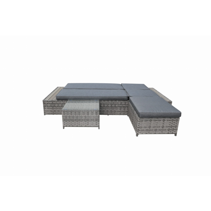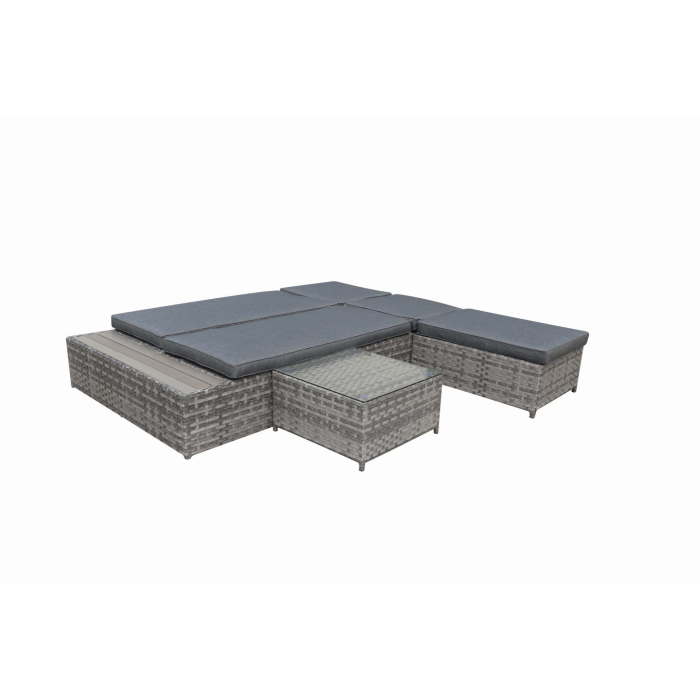 Vďaka tomu je nábytok odolný voči nepriaznivým poveternostným podmienkam - dažďu, mrazu alebo extrémnym teplotám. Nábytok predstavuje najnovší dizajn a zaujme svojou originálnou podobou. Sada DIABOLICO obsahuje vankúš, stôl a posteľ, ktoré v závislosti od vašich potrieb slúžia aj ako pohovka. Vďaka nastaviteľným chrbtom je nábytok hojne používaný - za pár okamihov sa môže pohovka zmeniť na posteľ a naopak! Sada DIABOLICO je odrazom najnovších svetových trendov v oblasti vonkajšieho prostredia. Široký ratanový cop s rôznymi odtieňmi šedej dodá každému zariadeniu jedinečný štýl a elegantne zdobené vankúše pridajú triedu. DIABOLICO farba súpravy: vresovo šedá, škvrnitá Pletenec: 15 mm x 1,2 mm ratan, hladká štruktúra Dizajn nábytku: hliník