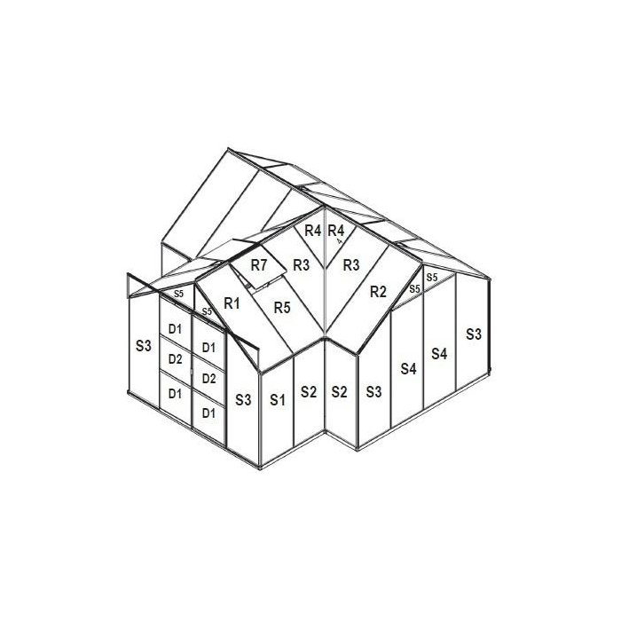 Obsah balenia a rozmery jednotlivých dosiek náhradného presklenia pre skleník SIRIUS: