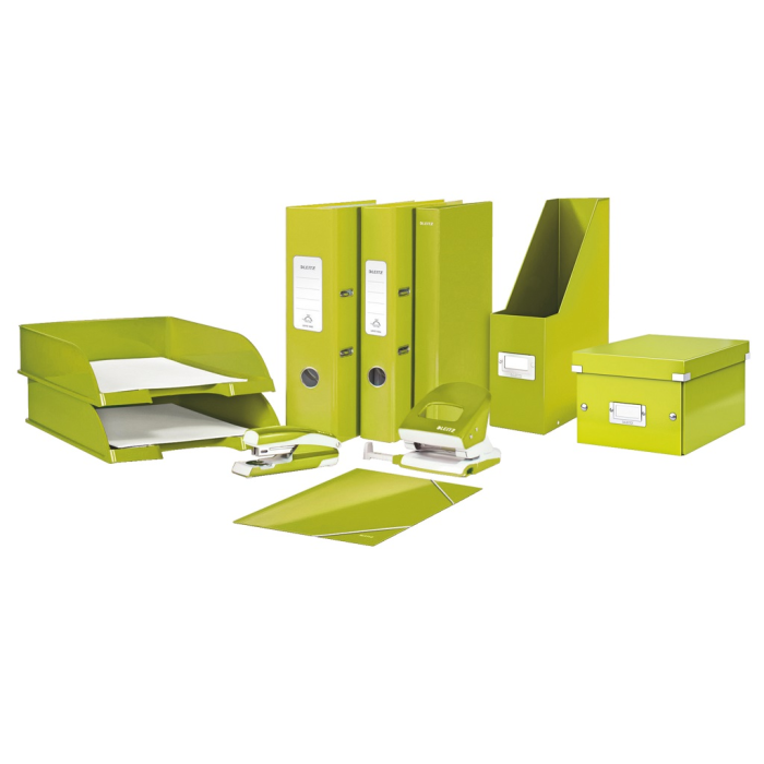 Ľahko stohovateľný plastový odkladač formátu A4 rady WOW v žiarivej farbe s možnosťou stohovania aj stupňovito dozadu.