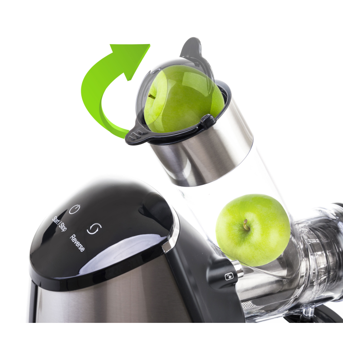 Plniaci otvor je prispôsobený pre vkladanie veľkých kusov ovocia a zeleniny, ako sú mandarinky alebo jabĺčka aj pre odšťavovanie podlhovastých surovín, napríklad mrkvy alebo zeleru.