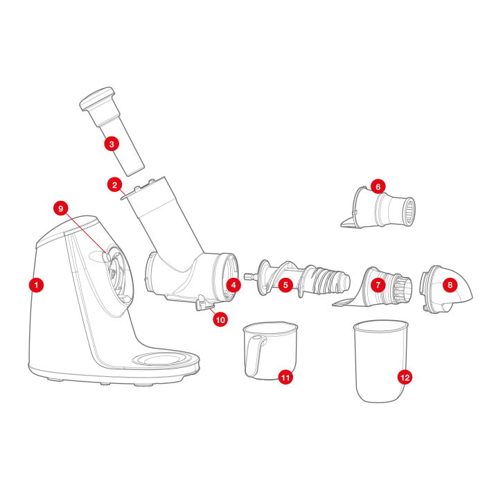 Odšťavovač G21 Gracioso k vám nepríde sám, vezme si so sebou pomocníkov. Kvalitná plastová nádoba s úchopom je uspôsobená pre zachytenie šťavy pod výpusťou. Na odšťavenú dreň sme vám pribalili nádobku z odolného plastu. Samozrejme nechýba ani praktické vtláčadlo.