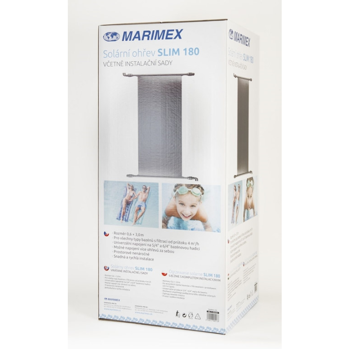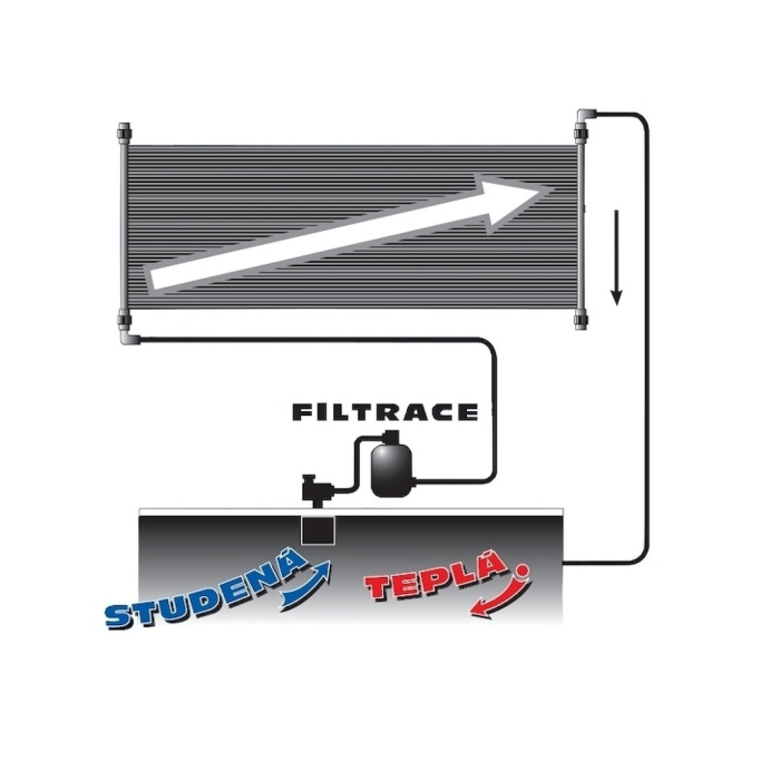 Solárny panel Slim 180 pohlcuje tepelnú energiu slnečných lúčov a odovzdáva ju vode, ktorá panelom prúdi. Chladná voda z bazéna je pomocou bazénovej filtrácie vháňaná do solárneho panelu, kde sa ohrieva a vracia sa späť do bazéna. Solárny panel Slim napojíte na hadice s priemerom 32 aj 38 mm.