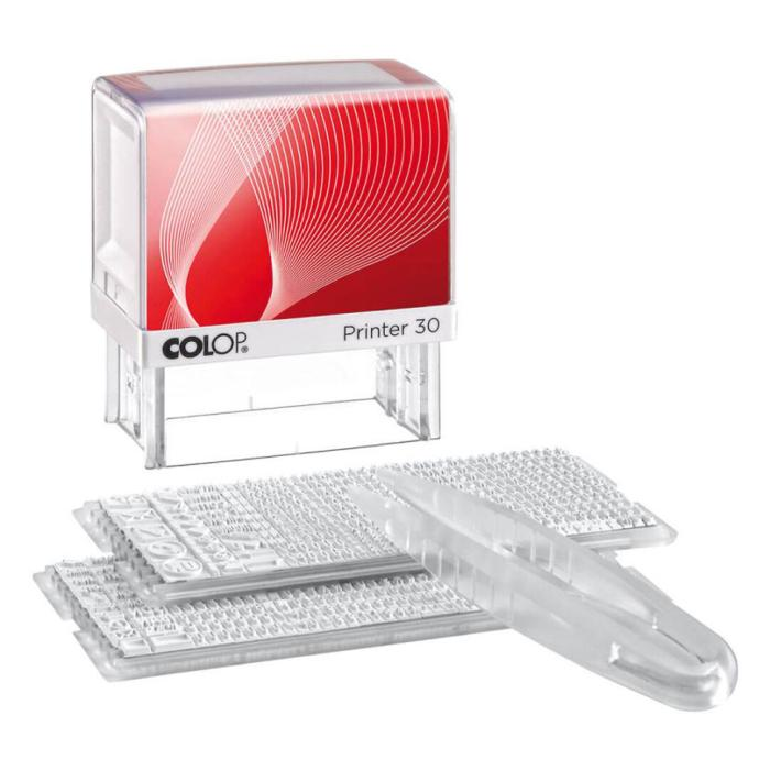 Súprava Printer 30/ 2 Set pre maximálne 5 riadkov textu je dodávaná vrátane pečiatkovej podušky, typovej sady 3,5 mm a 2,5 mm a pinzety.