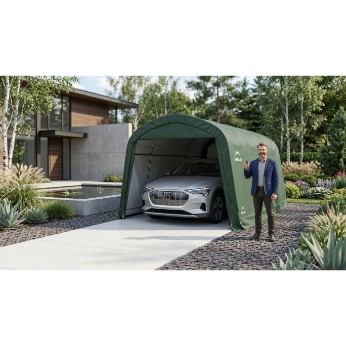 Veľmi kvalitný a pevný plachtový prístrešok. Prístrešok môže slúžiť na uskladnenie záhradkárskych, športových, bazénových, grilovacích, kempingových i motoristických potrieb. Prístrešky väčších rozmerov vytvorí kryté garážové státie pre Váš automobil.
