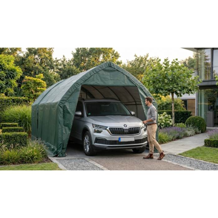 Veľmi kvalitný a pevný plachtový prístrešok. Prístrešok môže slúžiť na uskladnenie záhradkárskych, športových, bazénových, grilovacích, kempingových i motoristických potrieb. Prístrešky väčších rozmerov vytvorí kryté garážové státie pre Váš automobil.