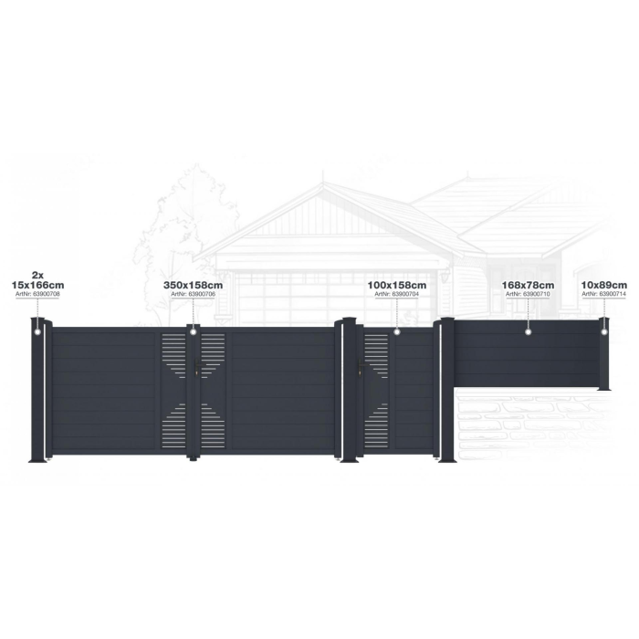 • Moderné hliníkové bránky, brány a plotové polia radu G21 Marion kombinujú robustnosť s ľahkosťou, čo zaisťuje dlhú životnosť a odolnosť voči poveternostným vplyvom.