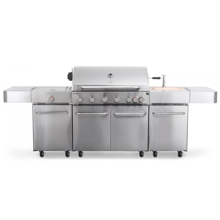 Plynový gril so 6 základnými horákmi, 1 bočným + 1 Infra Red horákom. Grilovacia kuchyňa Nevada má 8 horákov, vstavaný drez s vekom/krájacou doskou a veľkú pracovnú plochu, múdro riešené odkladacie priestory, vstavaný teplomer vo veku, systém Flame Tamer a predĺženú záruku.