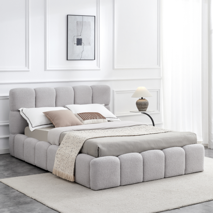 Posteľ s kovovým roštom a úložným priestorom, 140x200, sivá, SORELA