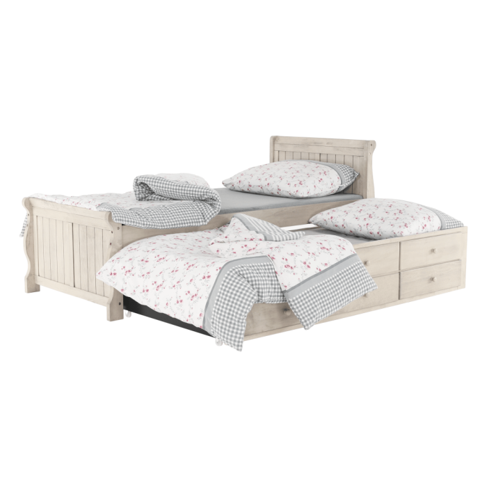 Posteľ s prístelkou, antická biela, 90x200, ANTIKO