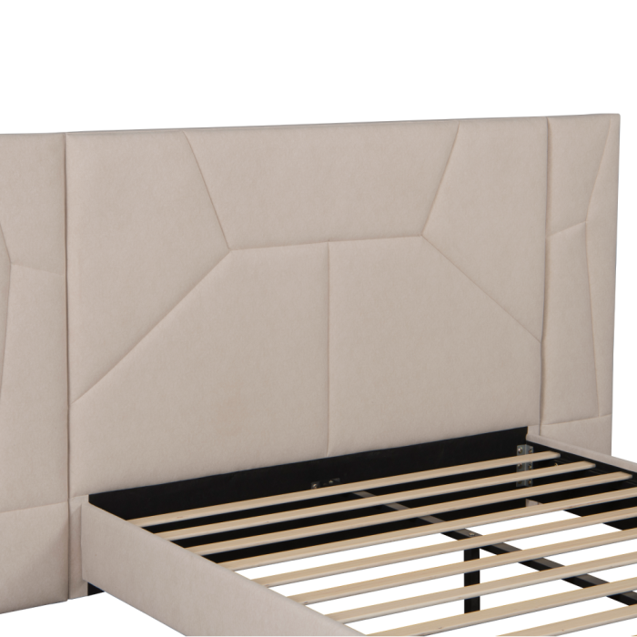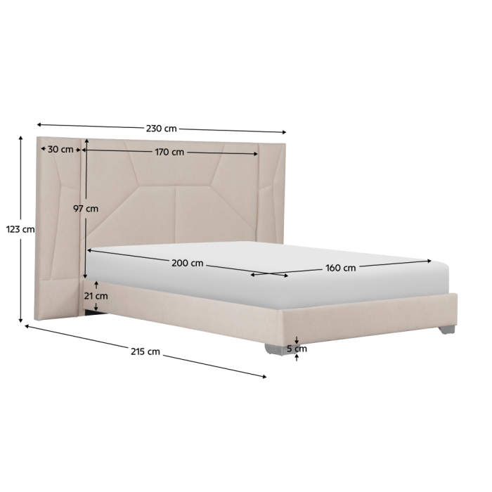 Posteľ s roštom a LED osvetlením, 160x200, béžová Velvet látka, ALTESA