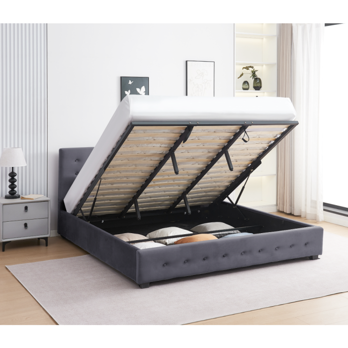 Posteľ s roštom, 180x200, tmavosivá Velvet látka/gold chróm zlatá, GEORGIA