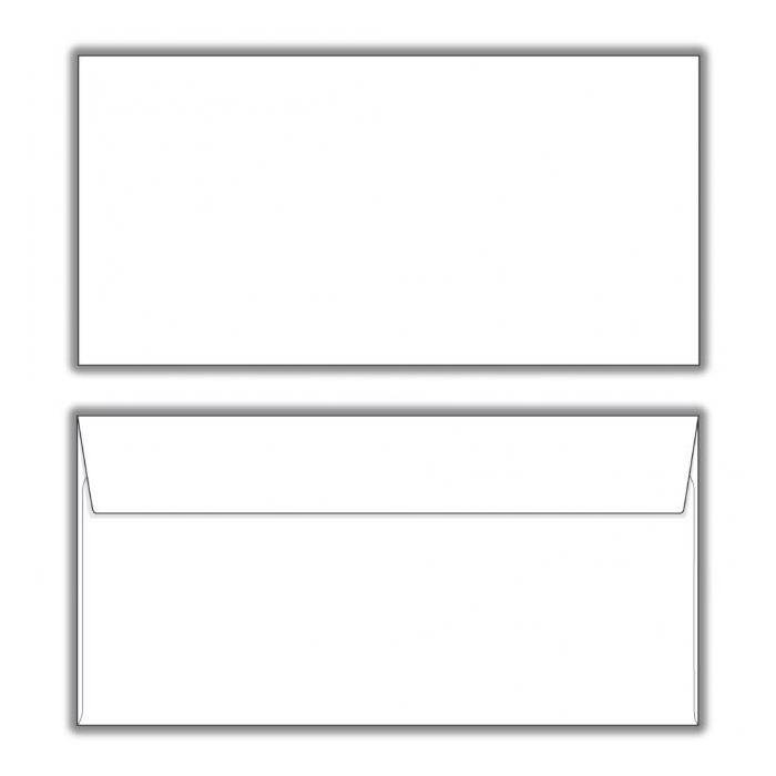 Biele obálky s odtrhávacou páskou vyrobené z bezdrevného papiera.