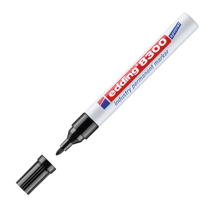 Permanentný popisovač určený predovšetkým na priemyslové použitie, pretože je obzvlášť vhodný na popisovanie mierne mastných a zaprášených povrchov.