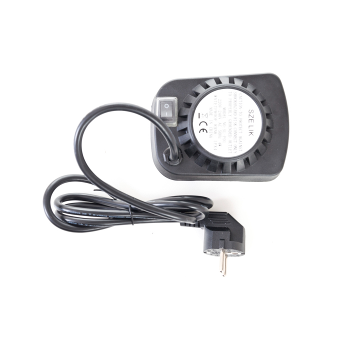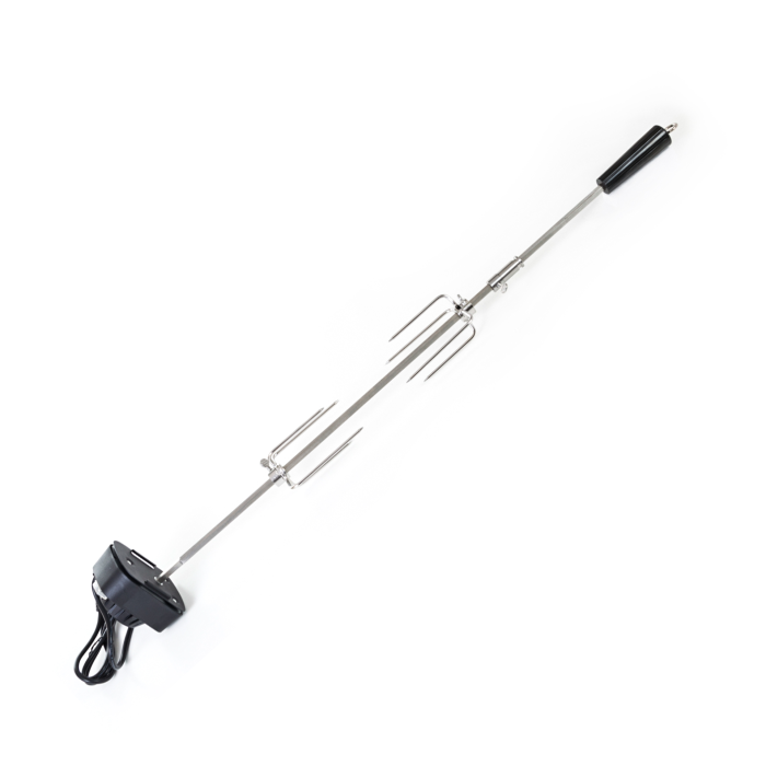 Z jednej strany je ihla opatrená odnímateľným plastovým držadlom, na ktorom je praktické očko pre uchytenie. Z druhej strany sa nachádza motorček v plastovom kryte, na ktorom je umiestnené tlačidlo na zapínanie/ vypínanie. Motorček s napätím 230 V jednoducho zapojíte do elektriny pomocou kábla v dĺžke cca 125 cm. Motorček s ihlou otáča rýchlosťou asi 2 otáčky za minútu, aby sa pripravovaný pokrm nepripekal, ale piekol sa rovnomerne.