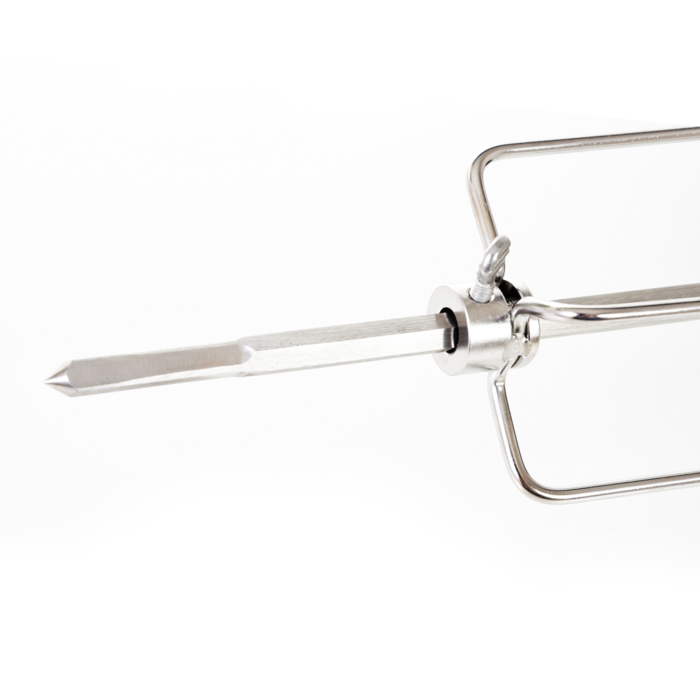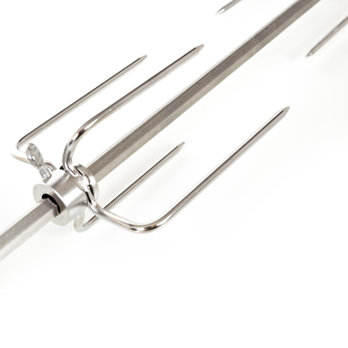 Grilovacia ihla s motorom je vyrobená z nerezovej ocele a z oboch strán je opatrená štyrmi ihlicami s aretačnými skrutkami, vďaka ktorým si môžete ihlice nastaviť podľa vlastnej potreby.