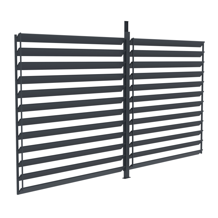 Bočná stena s otočnými pozinkovanými lamelami pre väčšie súkromie aj ochranu pred vetrom, dažďom či slnkom. Stabilná konštrukcia z kvalitného hliníka, jednoduchá inštalácia.