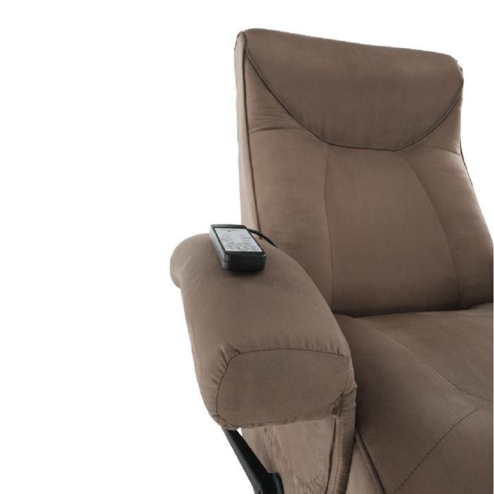 Relaxačné kreslo, s elektrickou funkciou vibrovania, sivohnedá látka, SUAREZ