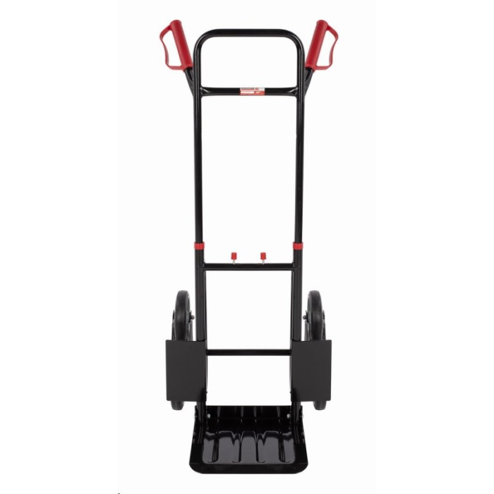 Náklad je pri transporte stabilne opretý o pevnú oceľovú konštrukciu rámu. Lopata s rozmermi 300 x 290 mm je sklopná. Pre lepšiu stabilitu širšieho nákladu je konštrukcia vozíka doplnená na každej strane opornou doskou z oceľového plechu. Pohodlný a bezpečný úchop zaistia gumové rukoväte, ktoré sú navyše vybavené okami pre zníženie rizika vykĺznutiu.