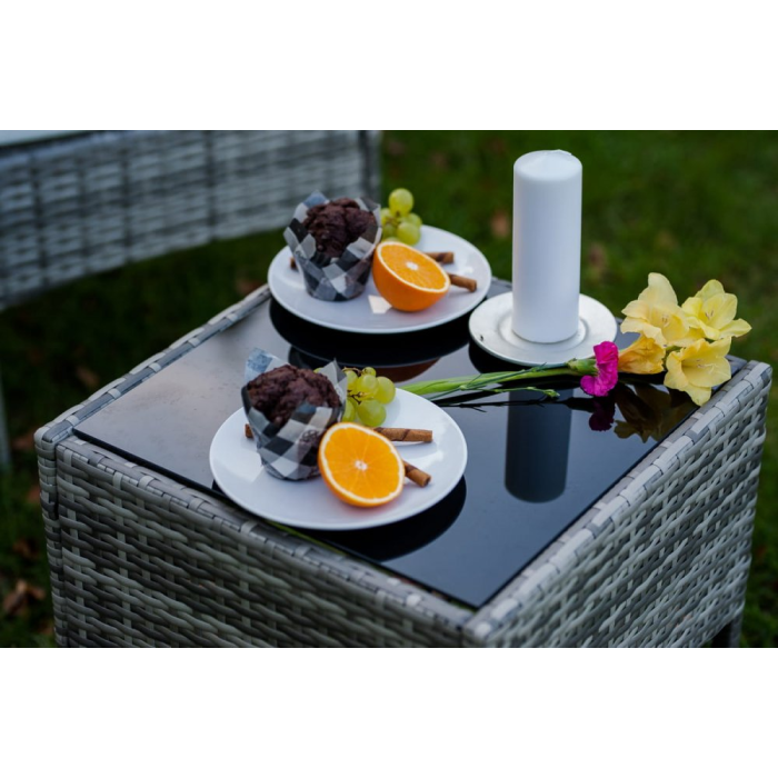 Je vyrobená z vysoko kvalitného technického zariadenia odolného voči nepriaznivým poveternostným podmienkam a vyznačujúceho sa starostlivosťou. SANO zapôsobí kombináciou funkčnosti a elegancie, ako aj klasického štýlu, ktorý ocenia zákazníci, ktorí chcú relaxovať na čerstvom vzduchu. Farba sady SANO: šedá, nerovnomerná Pletenie: 5 mm x 1,2 mm technorattan, hladká konštrukcia Konštrukcia nábytku: oceľ
