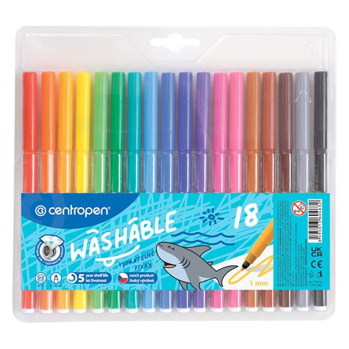 Popisovač vyrobený z PP s ventilačným bezpečnostným uzáverom a vláknovým hrotom odolným voči zatlačeniu.